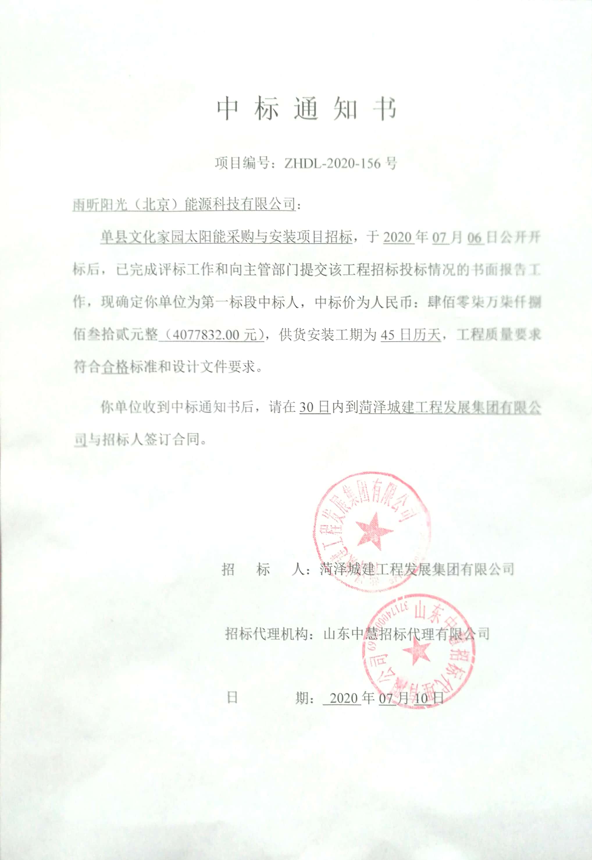 雨昕陽光市場部再傳捷報(bào),公司中標(biāo)單縣文化家園太陽能熱水采購與安裝工程;本次中標(biāo)再次印證了雨昕陽光在二十年發(fā)展中積累的強(qiáng)大實(shí)力,從產(chǎn)品到技術(shù)、施工經(jīng)驗(yàn)等各方面綜合實(shí)力的體現(xiàn)。