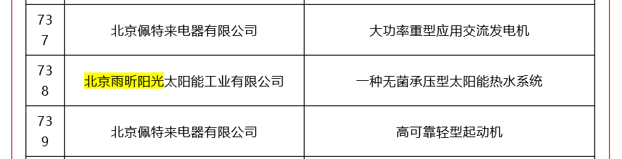 雨昕陽光無菌承壓無動力太陽能熱水系統(tǒng)入圍第九批北京市新技術(shù)新產(chǎn)品(服務(wù))名單
