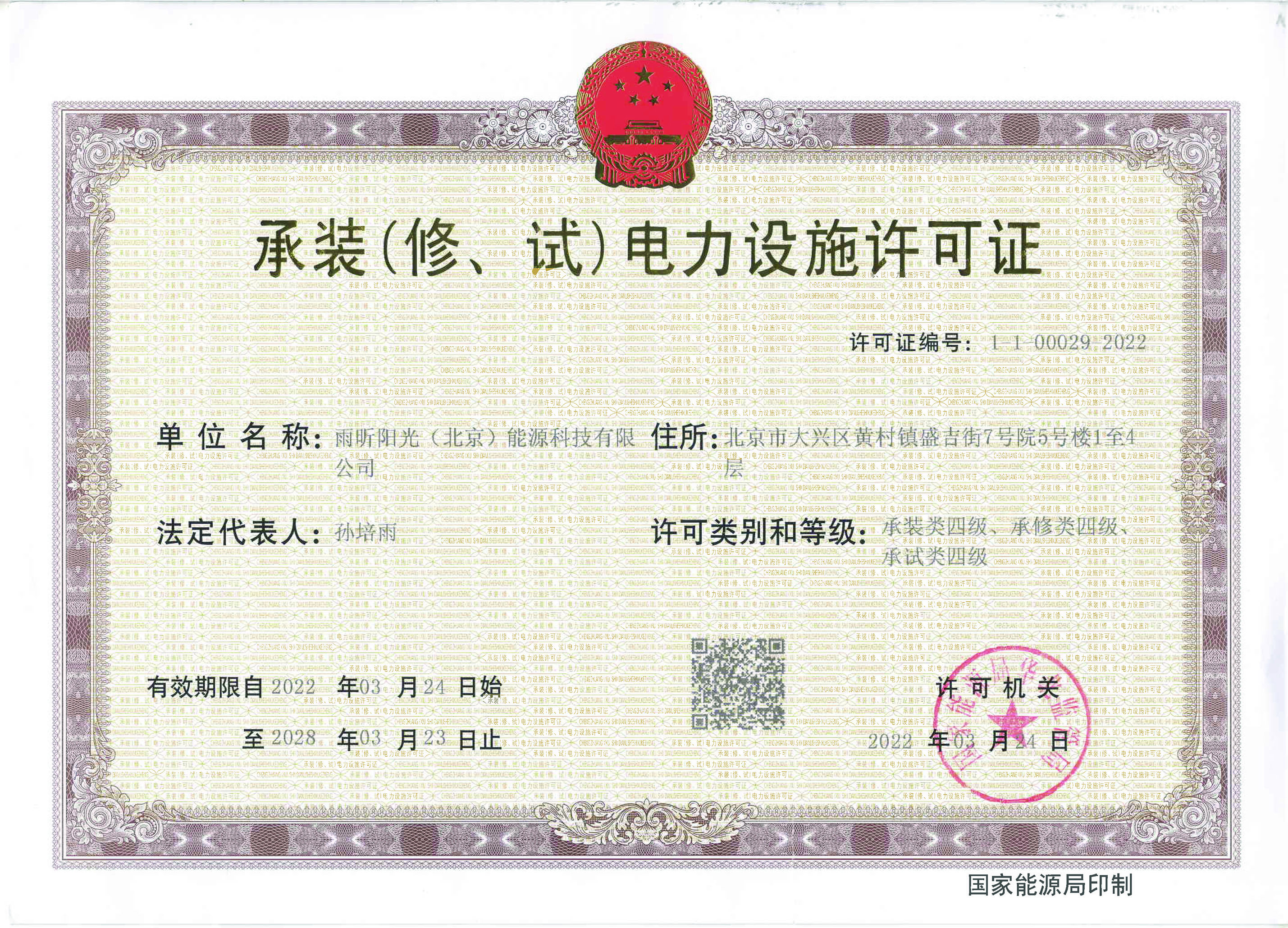 致力光伏發(fā)電,雨昕陽光獲得承裝電力設施許可證