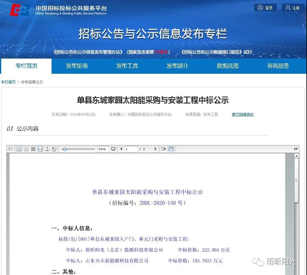 6月23日,雨昕陽光市場二部再傳捷報,經(jīng)過一輪又一輪的激烈競爭,雨昕陽光(北京)能源科技有限公司最終中標單縣東城家園太陽能熱水采購與安裝工程。