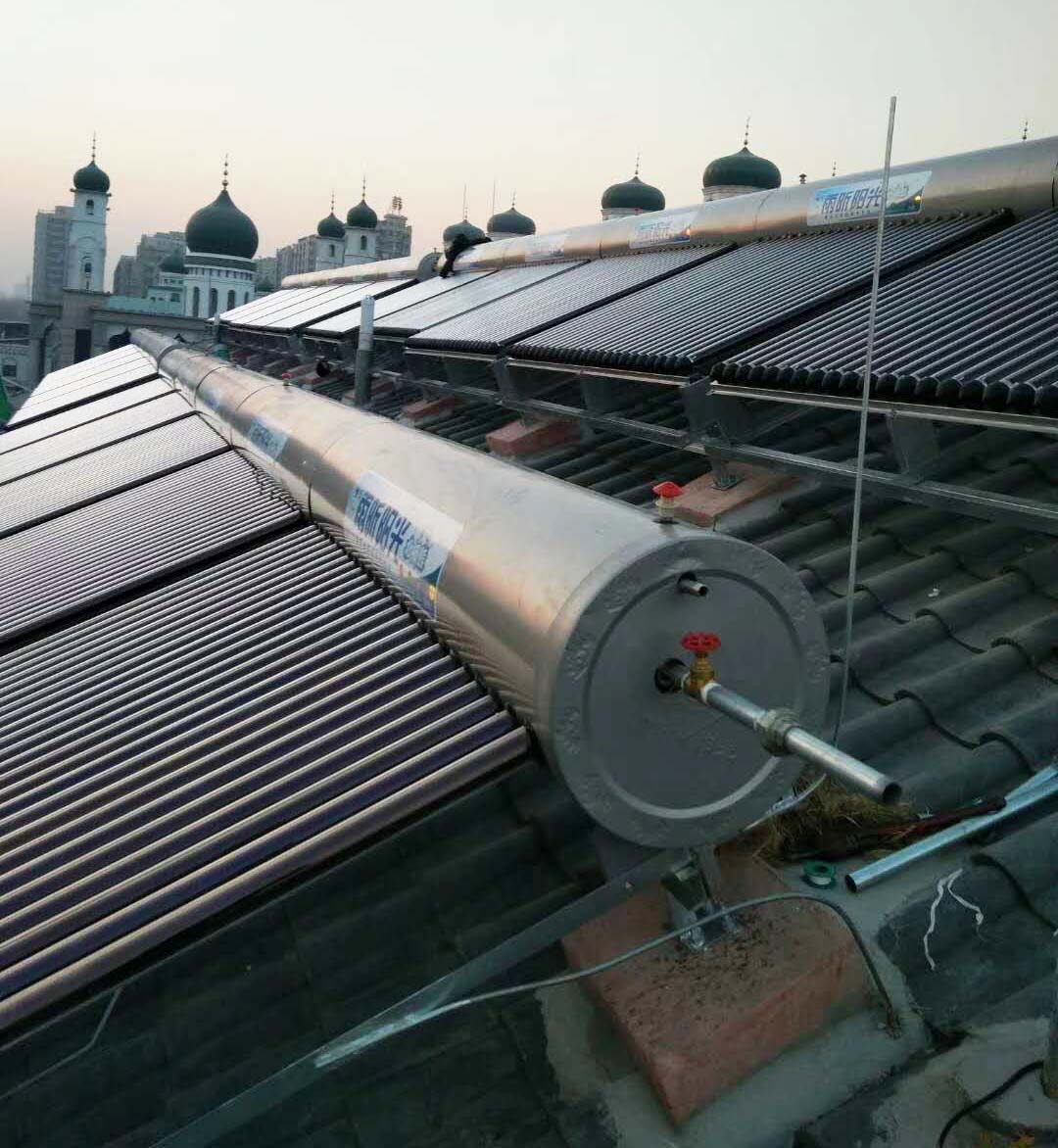 該項(xiàng)目中小學(xué)及幼兒園設(shè)計(jì)采用無(wú)菌承壓無(wú)動(dòng)力太陽(yáng)能熱水器(帶儲(chǔ)水罐),儲(chǔ)水罐內(nèi)置波接管換熱器,使普通太陽(yáng)能具有承壓功能,頂水式承壓供水。水箱內(nèi)膽中的水通過(guò)真空管直接加熱,并進(jìn)行蓄熱,用水時(shí)通過(guò)波接管換熱器將水箱內(nèi)的熱量置換出來(lái),承壓供水,水質(zhì)無(wú)污染,操作方便。太陽(yáng)能熱水器系統(tǒng)同樣作為燃?xì)鉄崴骰螂姛崴鞯念A(yù)熱系統(tǒng),配合恒溫混水閥使用,以防止高溫燙傷。